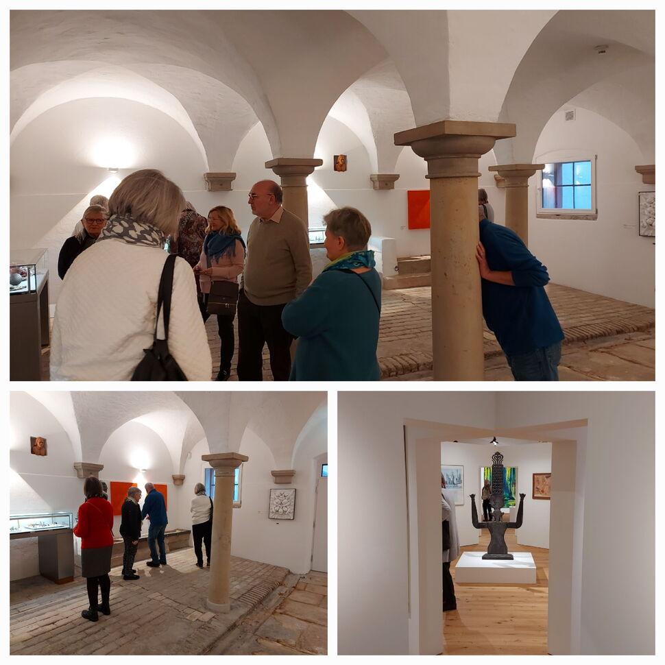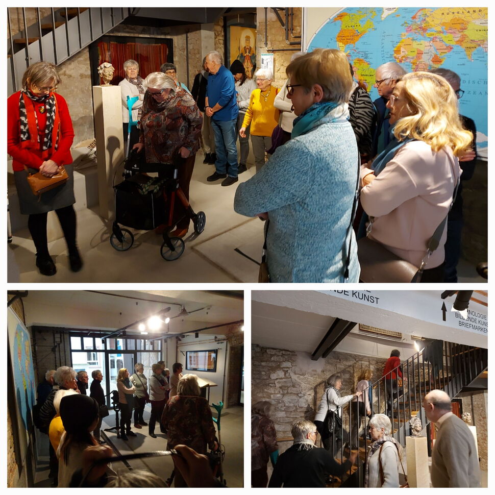 Am 26.01.23 erhielten wir Gelegenheit zu einem ganz speziellen Besuch in einem schön sanierten, unter Denkmalschutz stehenden alten Weingut in Gross-Winternheim, das geschickt in ein modernes Museum für die Stiftung Gemünden und Freunde umgewandelt wurde. Die umfangreiche Kunst- und Kultursammlung, die von den Eheleuten Heidrun und Dirk Gemünden über Jahrzehnte auf ihren weltweiten Reisen zusammengetragen wurde, kann dort nach Vereinbarung besichtigt werden. Wir waren schwer beeindruckt von der perfekten Präsentation der vielen Masken, Statuen, Skulpturen, Bilder, alten Schmuckstücke und Töpferwaren sowie seltenen Briefmarken und zeitgenössischer Kunst auf zwei Etagen, im Keller und einer Kuhkapelle. In zwei Gruppen wurden wir durch das Haus geführt und kamen aus dem Staunen nicht heraus. Zum Abschluß unseres Ausflugs in die Welt der Kunst besuchten wir die Nieder-Olmer Weinstube und ließen den Nachmittag bei einem Glas Wein und einem leichten Abendessen nochmal Revue passieren.
