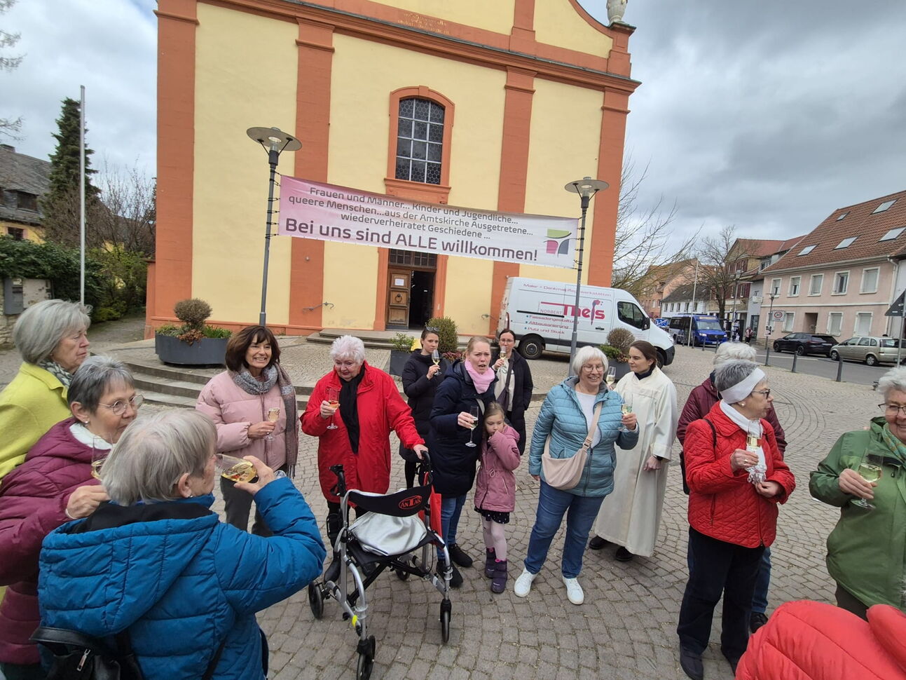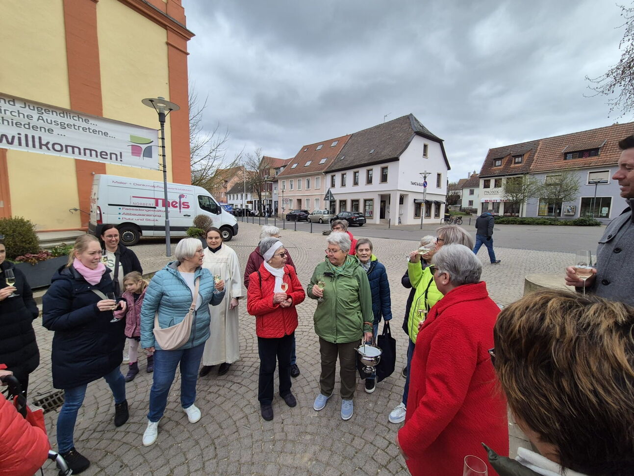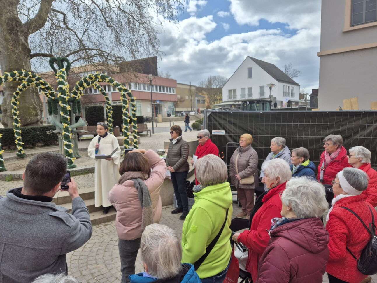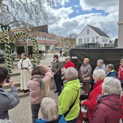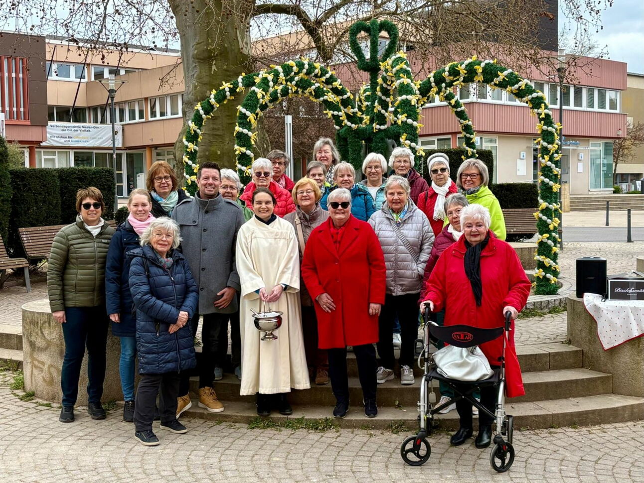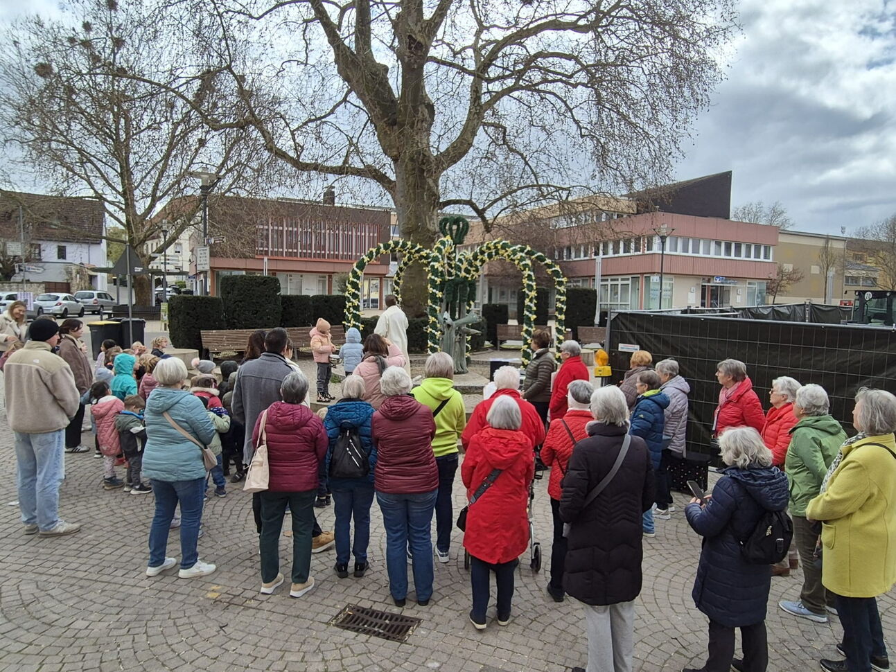 Der Brunnen wurde unter gesanglicher Mitwirkung der katholischen Kita-Kinder von der Gemeindereferentin Bettina Werbick im ökom. Auftrag gesegnet und an Ortsbürgermeister Dirk Hasenfuss, für die Stadt Nieder-Olm, übergeben.